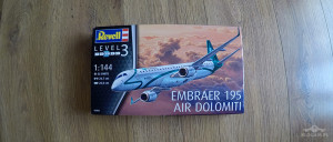 Embraer 195 w skali 1:144, jeden z najnowszych produktów firmy Revell zagościł w piątek w mojej pracowni. Tym razem revell wypuścił produkt w malowaniu AirDolomiti. Trzeba przyznać że same kolory malowania przyciągają wzrok, gdyż nad polskim niebem widać je najczęściej w malowaniach LOTu (ale o tym w innym poście).