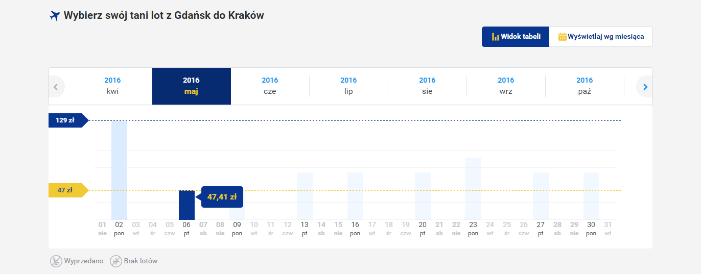 Ryanair obniżył także ceny połączeń do norweskiego lotniska Oslo Rygge. W kwietniu możecie zapłacić za bilet w jedną stronę nawet 31,40zł. Tańszym kierunkiem jest także linia Gdańsk-Kraków, gdzie cena wyjściowa za bilet w jedną stronę może wynieść nawet 47,41zł na rezerwację wylotu w maju.